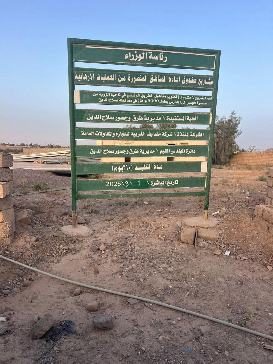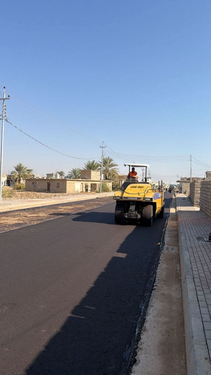 صندوق إعادة إعمار المناطق المتضررة من العمليات الإرهابية يباشر أعمال مشروع تأهيل وتطوير الطريق الرئيسي في ناحية الزوية بمحافظة صلاح الدين