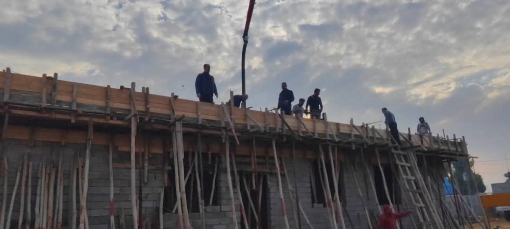 وتم صب سقف الطابق الأرضي في موقع المشروع بعد إكمال جميع الاستعدادات الإنشائية اللازمة فيما تتواصل باقي الأعمال بوتيرة مرضية تعكس التزام الشركات المنفذة والمعنيين في الصندوق.