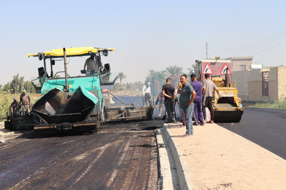 The Reconstruction Fund for Areas Affected by Terrorist Operations continues paving work on the second direction of the Al-Bu Jahsh Dam project on Khalidiyah Island in Anbar Governorate
