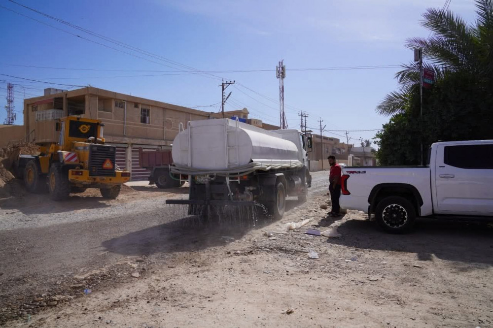 The visit included an inspection of the projects for the rehabilitation and development of internal streets in the al-Qadisiyah neighborhood, near the Command Headquarters and behind the exhibitions. His Excellency listened to a detailed explanation from the engineering and technical staff regarding the completion rates, implementation phases, and obstacles facing the work.