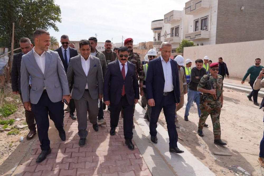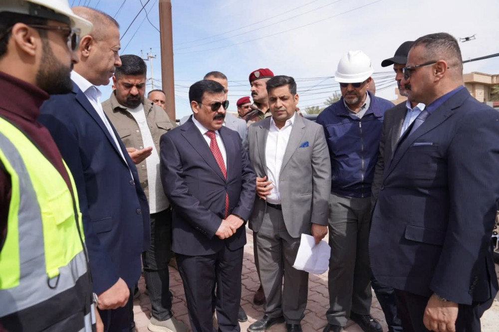 His Excellency the Chairman of the Fund for the Reconstruction of Areas Affected by Terrorist Operations, Engineer Saad Amin al-Jubouri, inspected the progress of the Fund's projects in Salah al-Din Governorate today during his visit to Tikrit District, in the presence of the Technical Assistant, the Mayor of Tikrit District, and the Director of the Municipality.